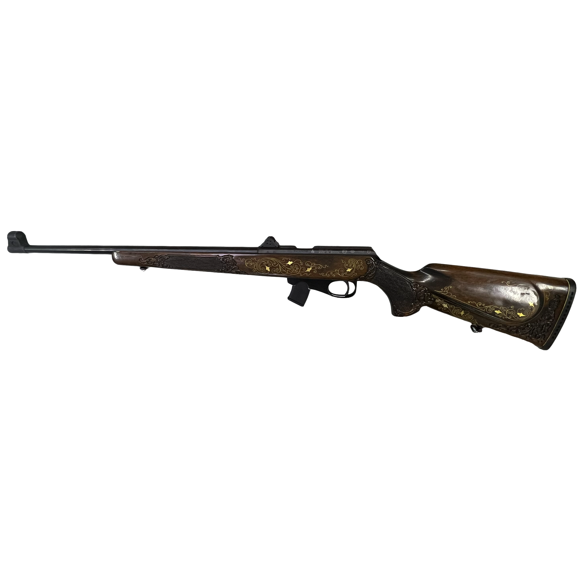 Данный экземпляр выполнен в штучном художественном исполнении, что придает оружию не только практическую, но и эстетическую ценность. На деревянных элементах приклада и цевья присутствуют декоративные элементы и более тщательная обработка. Благодаря этому карабин выглядит значительно эффектнее стандартных серийных моделей.
